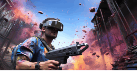 "Engage in online classes with a virtual instructor on a computer screen, featuring chat bubbles and a person wearing headphones